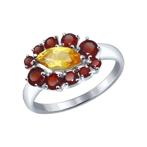 92011223 (Кольцо, 925, Белый, 16(Гранат Цитрин ))